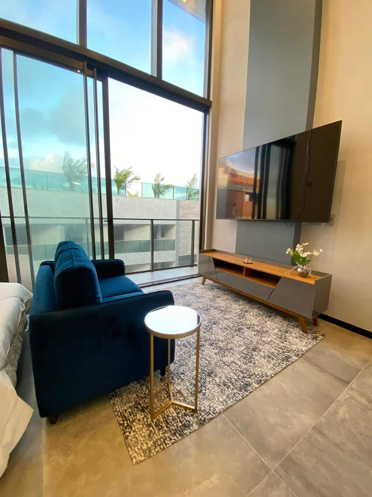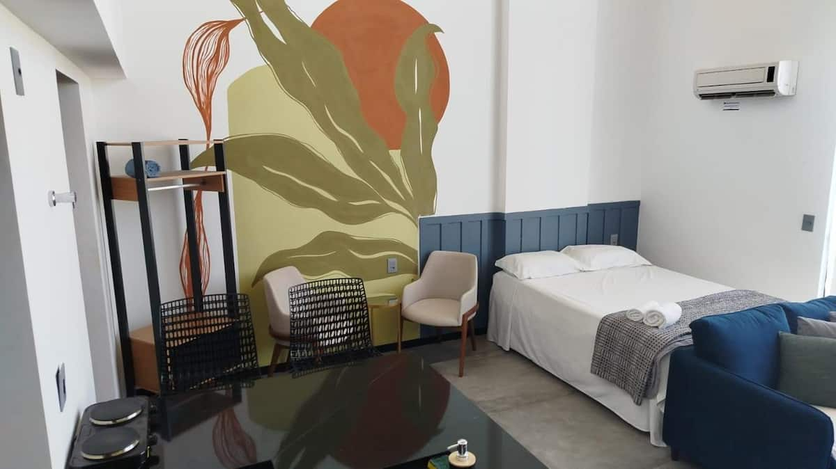 Quarto, Sala, Cozinha e Varanda com vista para o mar